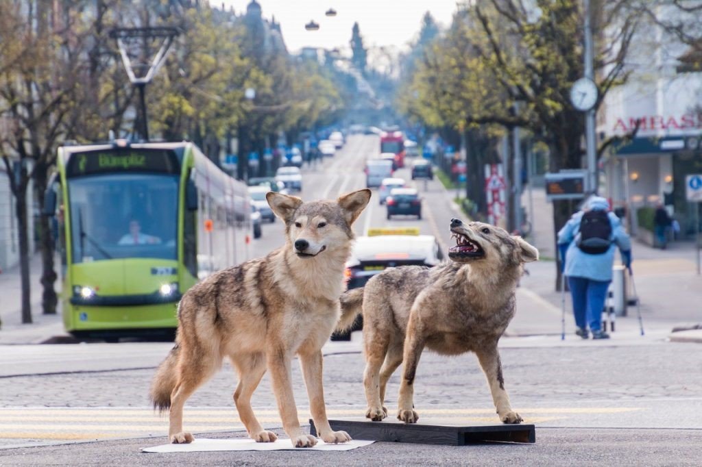Printemps 2022 : un couple de loups se promenant dans la banlieue de Zurich[38]